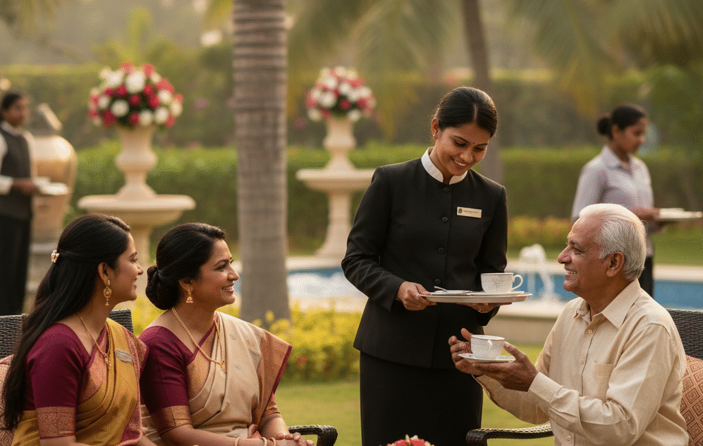 Our team is dedicated to treating your guests like family. We pride ourselves on the famous Indian tradition of warm, personal hospitality. You and your family get to enjoy the function while our experienced staff takes care of every small detail, ensuring a truly relaxed and memorable experience for the hosts and the guests.